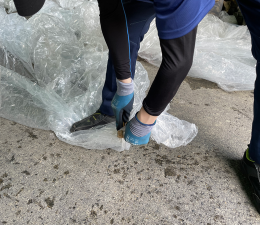 ゴミ処理場内でプラスチックゴミまたはペットボトルの選別作業を行います 。
